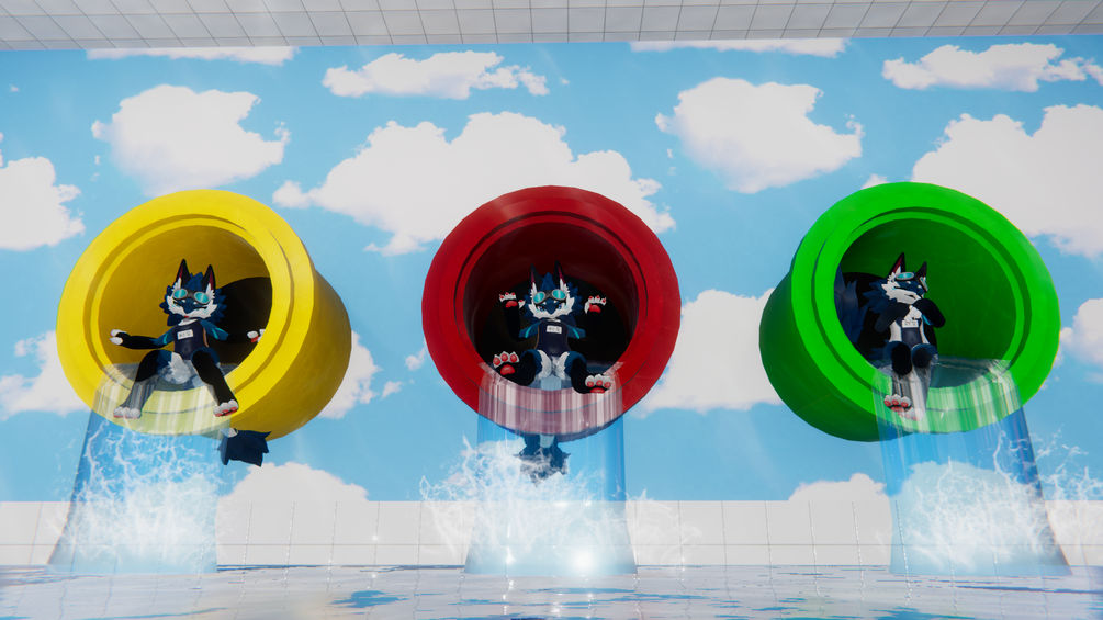• Swimsuit with a basic blue, and 3 toggleable patterns